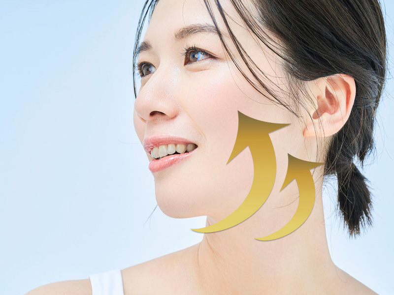 細い吸収性の糸をお顔に留置することで、皮膚の内側から引き上げフェイスラインなどをすっきりさせます。また、糸によってコラーゲンやエラスチンの生成が促されますことにより、肌のハリや弾力の向上も期待できます。