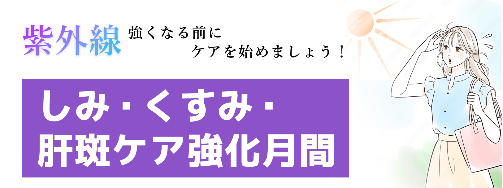 お顔のホワイトニングに効果的なメニューを揃えました。紫外線が本格的に強くなる前のこの時期からスタートしていただくのをおすすめします。