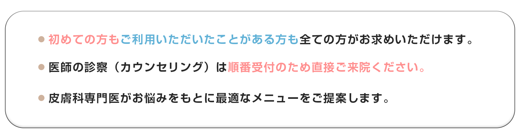 • 医師がお肌の状態を丁寧に確認します。